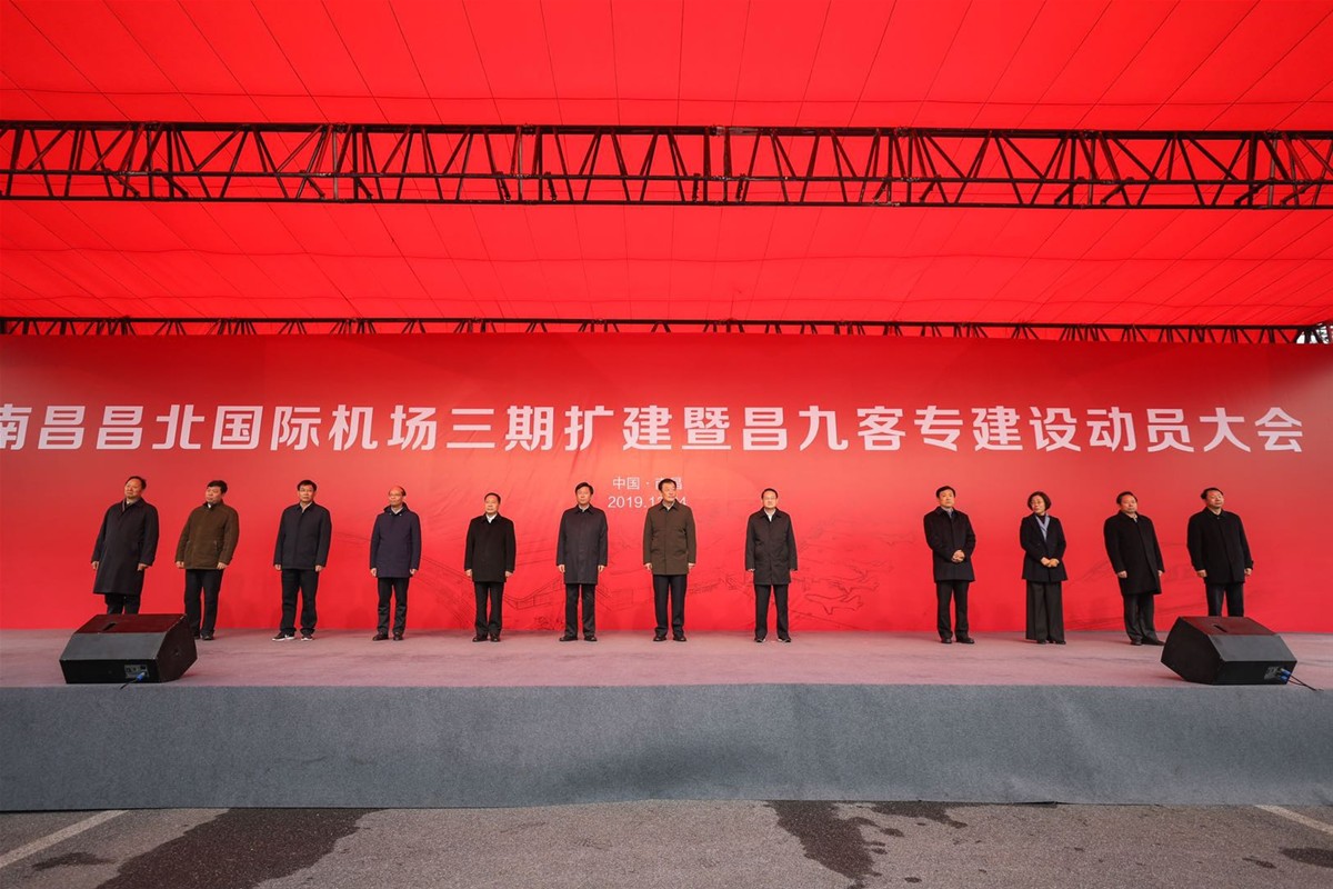 2019年12月24日,我司承建的昌北國際機場三期擴建項目暨昌九客專建設前期工程在昌北機場隆重召開動員大會,大會由偉明常務副省長主持,劉奇書記、煉紅省長蒞臨大會并致辭,美根書記、力平秘書長、曉軍、忠瓊副省長等領導一同出席大會。隆隆的飛機聲和著慷慨的陳詞為項目開工慶賀,大會在陣陣粗獷的汽笛聲和樁機聲中落下帷幕,我們定會牢記安全生產(chǎn)的使命時刻警惕危險,秉承魯班精神建設精品工程,文明施工樹立建筑業(yè)新標桿。
